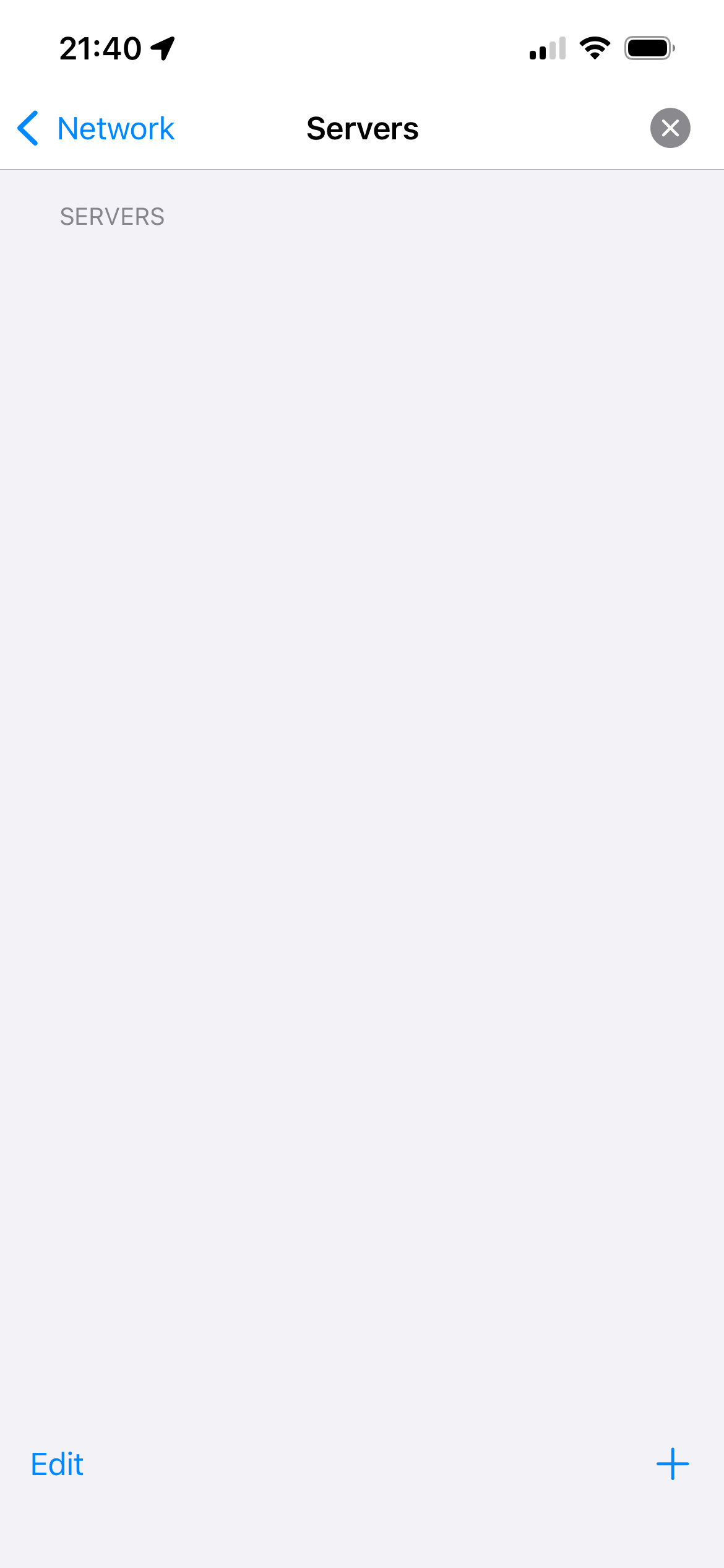 • Gehe auf Zahnrad → Network → Servers