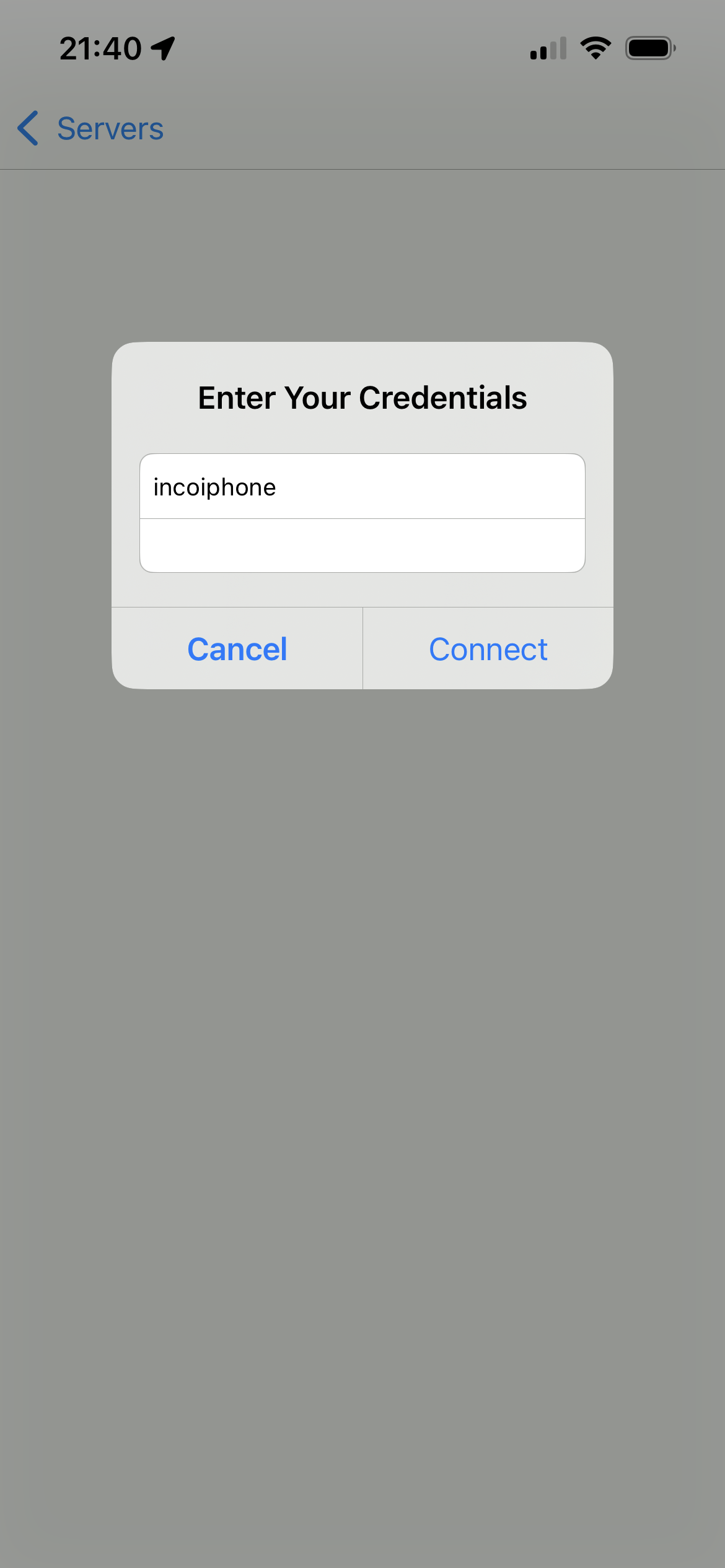Danach sollte die Verbindung zum Server hergestellt werden