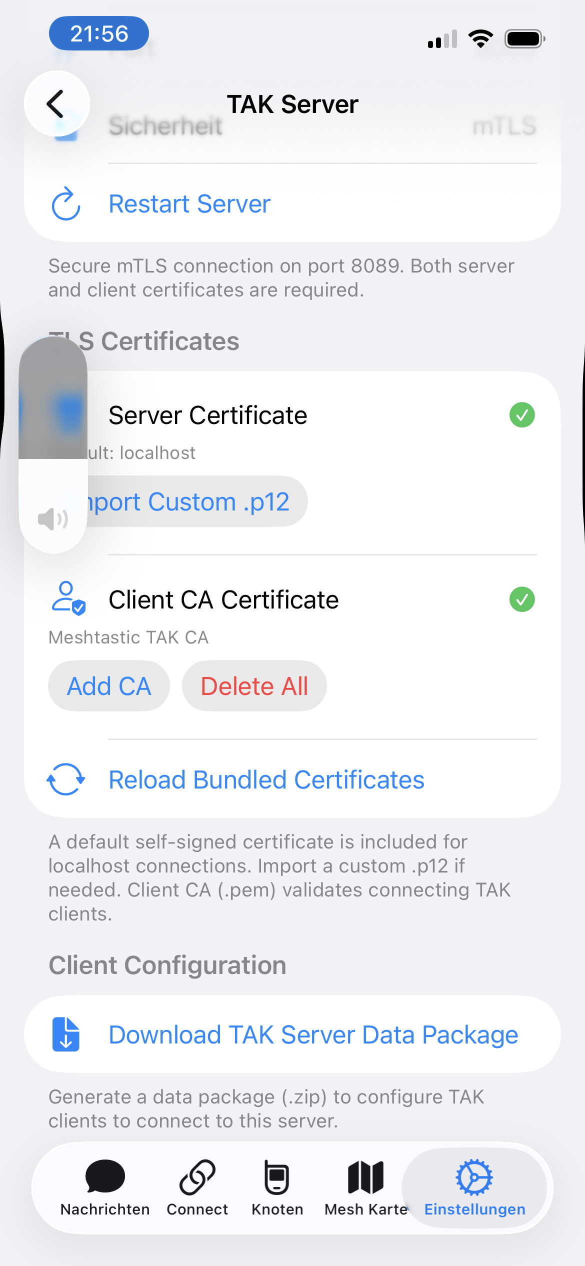 • Tippe auf „Download TAK Server Data Package“