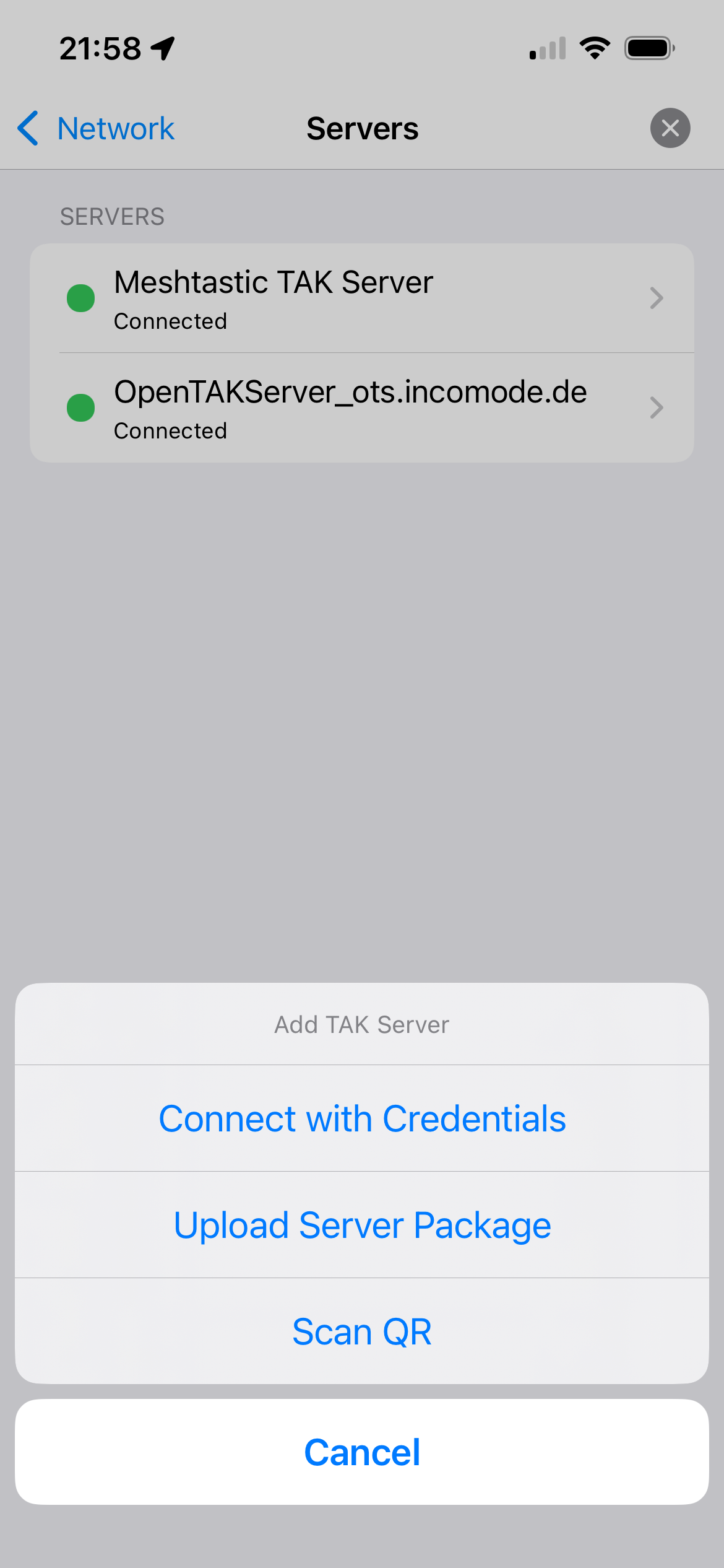 Aktuell lassen sich manche ATAK-Datenpakete nicht in iTAK importieren.